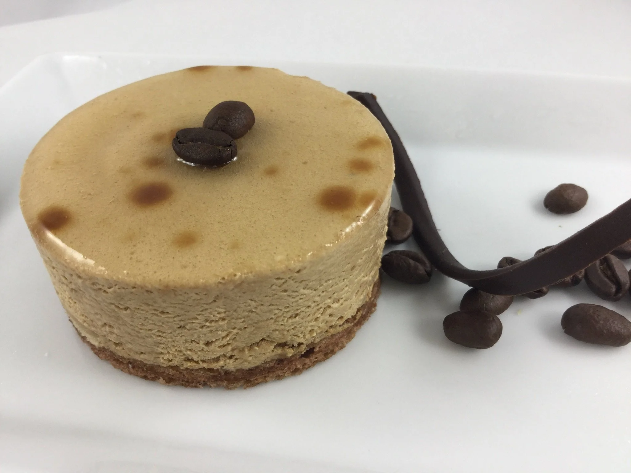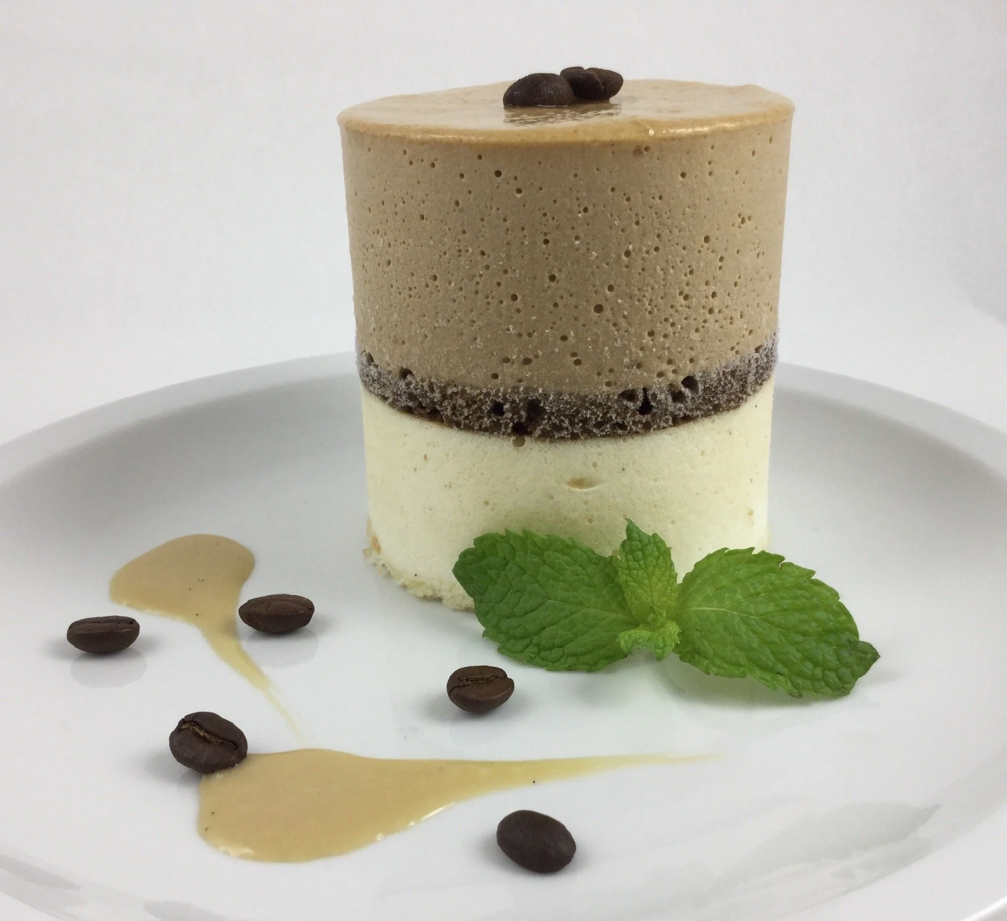 Mocha mousse with a drizzle of espresso syrup and a delightful coffee-infused flavor.