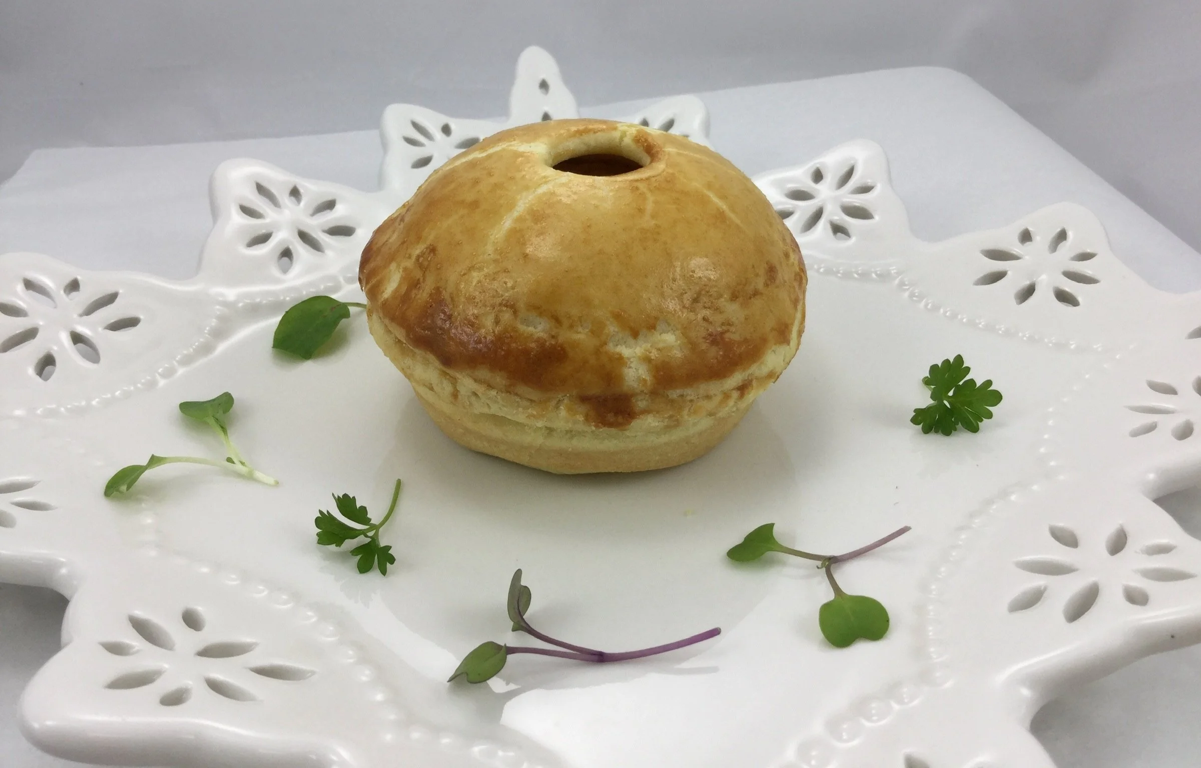 Mushroom turkey torte with flaky pastry crust and savory layers of seasoned turkey and sautéed mushrooms.